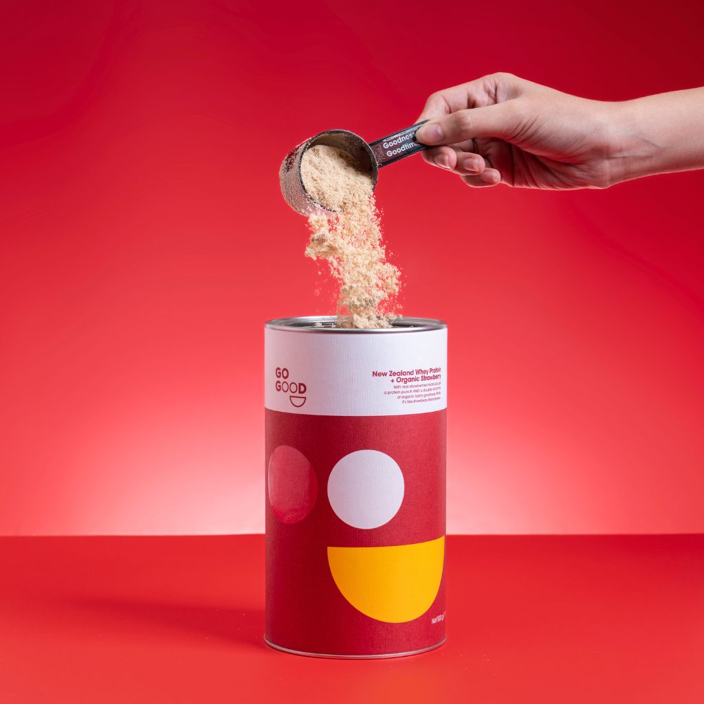 We’ve put the same love and care into our packaging as we have into our protein powders. Our canisters are made from 90% recycled cardboard, our scoop is compostable and even the packaging tape is plastic free. Go Good… go guilt free.