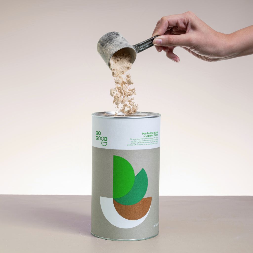 We’ve put the same love and care into our packaging as we have into our protein powders. Our canisters are made from 90% recycled cardboard, our scoop is compostable and even the packaging tape is plastic free. Go Good… go guilt free.